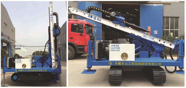M G L-13 5 D型履帶式深基坑錨固鉆機(jī)是無錫半山工程機(jī)械制造有限公司根據(jù)國內(nèi)地鐵、高層建筑、機(jī)場、 地源熱泵及其它深基坑進(jìn)行描固、旋噴、降水所開發(fā)的效率高的鉆機(jī)。